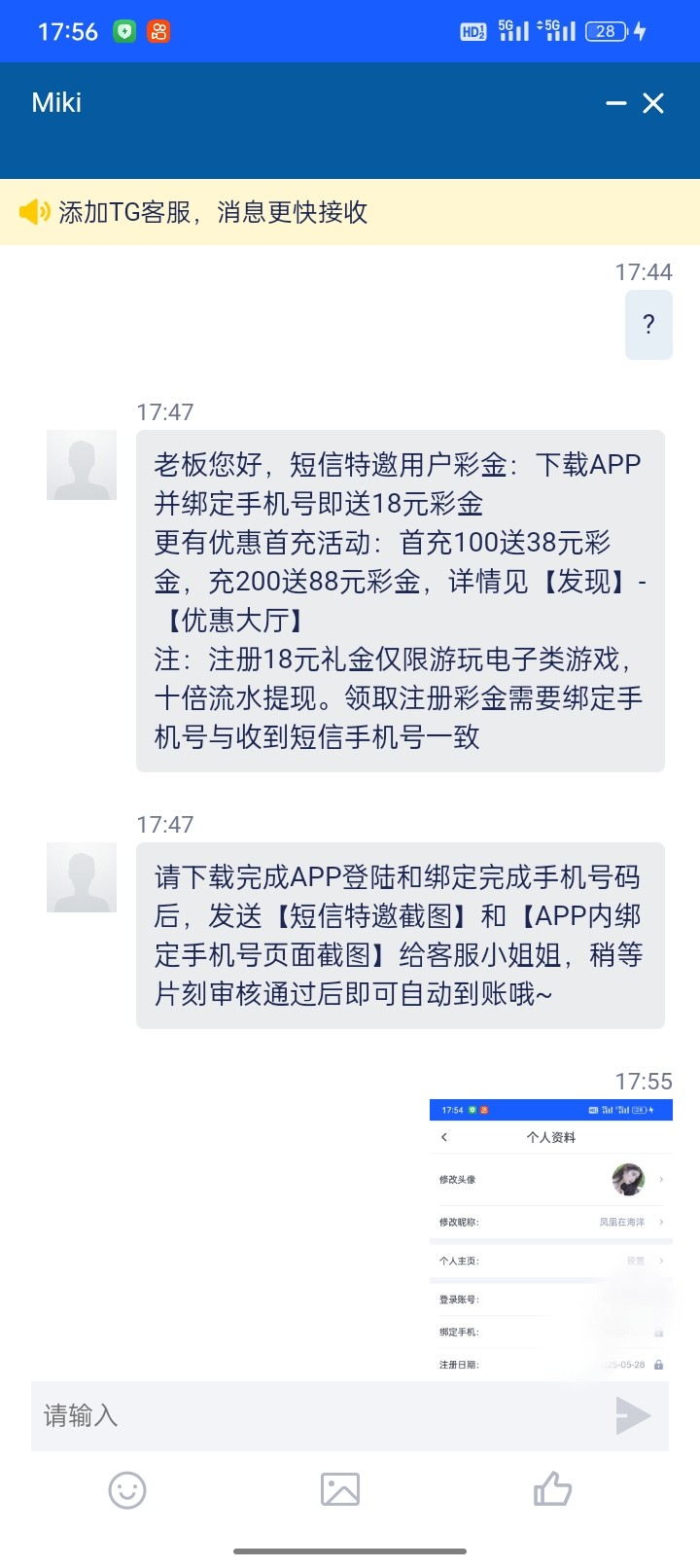 特邀碰瓷:收到短信的注册联系在线客服申请18彩金  查手机号有短信的去