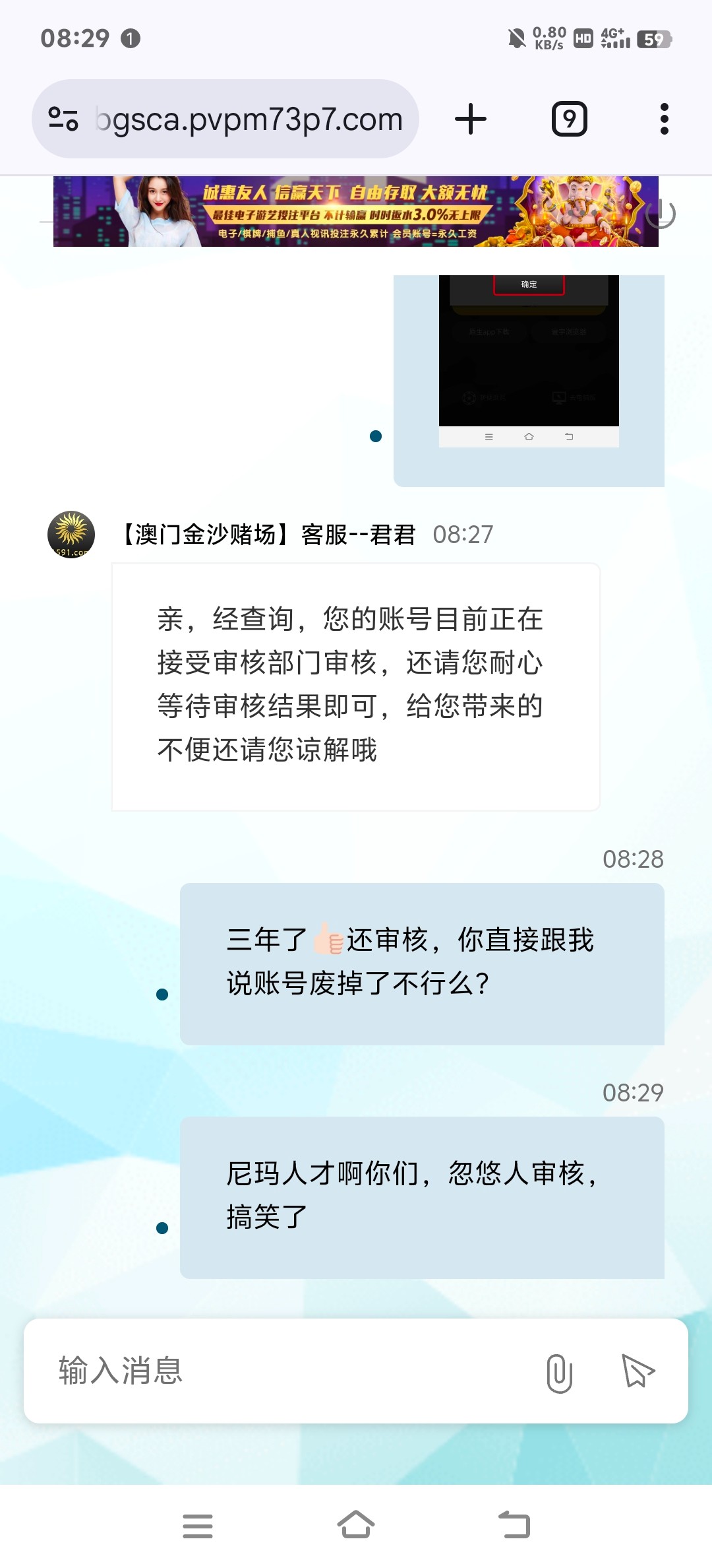 这j8金沙赌场真扯j8蛋三年前充了两百搞到五千多提现就停用我账号 大概22年三月左右到现在 闲着无聊就进去问问 哎哟真是给我j8都笑疼了